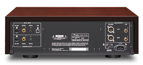 DP-750有RCA与XLR模拟输出各一组,还有同轴与光纤的数字输出和数字输入,更有一组USB输入可做数字符串流播放。以USB做数字符串流播放时,可支持的解析率最高,PCM可达32bit/ 384KHz、DSD 256。此外,它也有Accuphase自家的HS-Link端子,以RJ45为接口,用网络线传输,连接自家的具有HS-Link的数字器材。