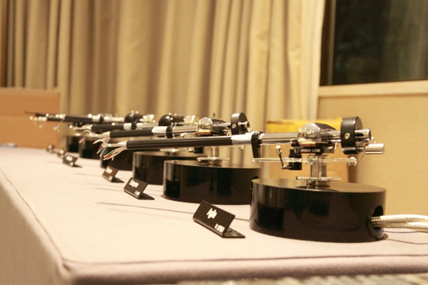 唱盘在现场工作时,容易受到振动、空气、温度......各种各样的时间影响,英国原音的设计理念就是把整个的马达系统、伺服系统和这个唱盘之间进行实时检测,使得它们之间相互的关系永远是稳定的一个标准的速度上。而且还具备安装简便和超强避震等特点。对于唱臂最主要的是采用了特殊设计的悬浮避震系统,这好比是一个坦克车在行使中还要发射炮弹,确保正常行进且要保持稳定。既要结实牢靠又要灵动传导,只有把这看似矛盾的两点有机结合一起才是一支好唱臂的关键所在。他还风趣的说很多贵价唱头也是基于这样的设计原理,但是那是易损的耗材,明智的烧友怎么会不把更多的投入焦点放到唱臂呢?只要把唱臂用好,所有的唱头放上去都能有出色表现,因此唱臂的设计更具有普世价值,这也正是他更注重唱臂设计的初心。