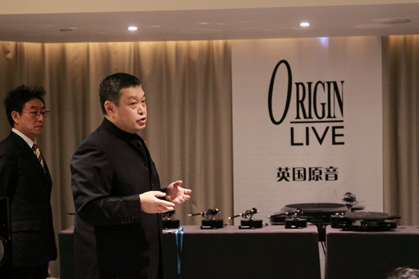 Origin live CEO兼设计师Mark Baker来自英国,是品牌的创始人,他主导了多年来历代产品的研发和改进,非常专注于模拟系统的构建。他非常高兴第一次来到中国为大家介绍英国原音的产品,现场演示的是Origin Live VOYAGER 旗舰黑胶唱盘和AGILE 准旗舰唱臂,所以着重讲解了其唱盘和唱臂的设计理念。英国原音的特殊在于力求改善器材的音乐性,音乐性从技术层面讲其实就是“时间”的问题。音乐的本身就是时间的累积,在整个模拟产品设计圈,最令设计师发愁的就是低音和高音之间协调性问题,这也是他一生所努力去解决的问题,而且这个答案恰巧被英国原音做到了。这好比是部队进行分列式,递正步时如果有一两个人不整齐马上就会乱了阵脚,实际上他在设计音响产品时就是按照这一思路进行。精准的时间处理便是核心关键,目前全球大约5~10家音响机构和媒体使用英国原音的唱盘和唱臂作为参考器材来考评其他东西。