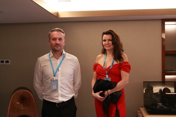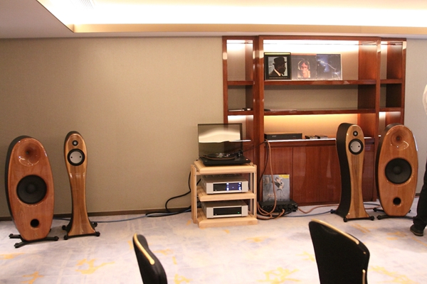 张冬松先生继续介绍到另外一个展厅VIP厅是比较特殊的,他认为这个展厅代表现在整个音乐方向。其一是立敏今年年初接手总代理的新晋品牌Aida Acoustics,品牌创始人兼设计师Mateusz Balabanski携夫人专程前来,这是一个来自肖邦的故乡——波兰的音箱品牌,通过现场演示的是Aida Thaisis 号角音箱、Galatea 陶瓷单元音箱,我们不难看出Aida的工艺设计和声音非常棒、非常有特点、音乐性也很强。所以,立敏音响从去年开始不断的进行推广,包括4月份的上海展以及8月份的香港展。作为一个崇尚自然与艺术美结合的崭新音响产品,有必要让它得到更广泛的认知。