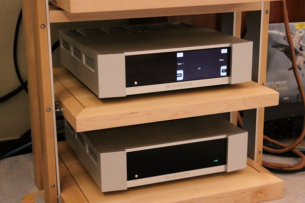 其二是大家看到的,也是大家都知道这个Bladelius谱丽声,这是立敏刚刚拿下的品牌总代理。本来CEO兼设计师Mike Bladelius打算出席展会,但由于临时有事而缺席非常可惜,以后有机会一定会把他请到中国来。因为Mike Bladelius在中国声誉是非常厉害的,而张先生也自己爆料,以前在中国的时候他也经营音响生意,而且是最早代理美国精神Threshold品牌的经销商,所以当他和Mike Bladelius再次相遇时,都彼此感慨岁月无声,Mike Bladelius先生在功放制作上的功力无容置疑,而他对数码未来的感知更是先声夺人,谱丽声Embla DL II数模转换中心/前级绝对行业的先行者。同场演示的还有最新推出的Bladelius Ask 晶体管放大器。