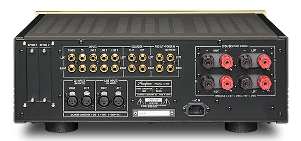 Accuphase现有的综合扩大机共有四款,分别是E-600、E-470、E-360与E-260,除了E-600为纯A类放大,为旗舰款式,其余均为A/B类。这台居中的E-360在8Ω阻抗下可输出100瓦,6Ω时120瓦,4Ω则140瓦,功率颇为实用。