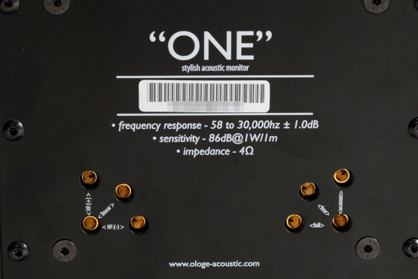 Ologe Acoustic ONE v2箱体的外观与虽然几乎看起来一模一样,实际上,前者在许多设计细节上做了许多改进。第一个改进的地方就是单元的安装方式。一般的喇叭是将单元以螺丝锁在前障板上,螺丝孔并没有将前障板打通。然而,新一代Ologe Acoustic ONE前障板上的螺丝孔是前后相通的,单元以螺丝锁在前障板后,前后方分别以螺帽以及金属圈锁住螺丝,让单元紧紧固定在前障板上,当单元运动时,前障板也会跟着谐震,发挥调音的功能。根据原厂的说法,这样的设计可以增进低频的表现。