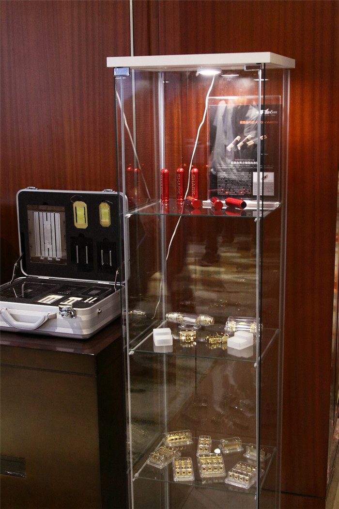 对于线材端子的不同种类形制,刘总编则认为XLR好过RCA、Y插好过香蕉插。另外,许多线材端子材料不是以纯铜制成,而是导电性差的合金铜,加上电镀又令其导电性进一步劣化。最佳的做法就是正极Pin采用导电率超过90%的TELLURIUM碲铜。而线材端子的连接方式大致有三种,传统的焊锡方式会受到焊锡与焊工的影响。压接方式可以有效去除焊锡的影响,但不同公司的技术高低也存在差异。此外,还有一种超音波融合方式,则运用较少。Shark Wire采用的则是其最重要的独家技术之一,Triple AAA Connection压接技术,能完美使导体固定在正中央,并在接合处加上金焊处理防止氧化。