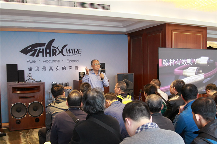 台湾《音响论坛》总编、著名音响人士刘汉盛先生受音响展组委会及台湾慕陆国际、成都永昌音响所邀请,在龙之梦会议中心二楼“VIP音乐厅”于19日、20日分两场为来宾举行了以“线材有效吗?”