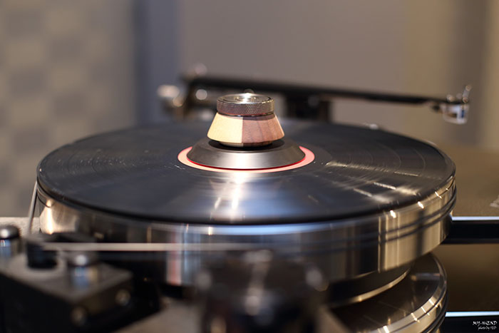 Kronos的黑胶唱盘6年来在设计上并无重大改变,因此从最初设计就已相当成熟,但这些时间带来的是一些部件升级,例如最近他才更换了新的唱片镇,这一趟来台也带了新唱片镇来给代理商,这些升级并非仅是为改而改,而是在他们不断地测试中找到了更好的方案,是确实提升了声音品质,有些升级甚至都是免费的。