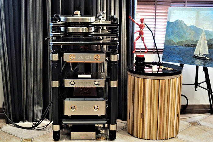 Louis Desiardins先生谈到他的产品是非常开心的,他说黑胶唱盘最重要的是震动的控制,这也是Kronos Audio唱盘的核心之一,我仍然记得首次与他在圆山音响展上见面时,他在音乐播放的当下以手直接敲击唱盘盘身,却没造成对音乐的影响,在场听众根本不知道他用手敲了唱盘,可见得设计相当完美。