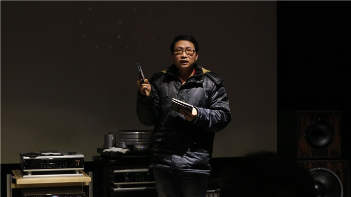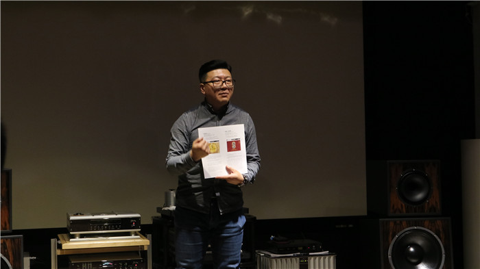 鑫星光音响负责人纪先生为诸位朋友讲解了关于音响品牌的技术特点,分享了为本次会活动进行多次搭配调试的过程,让现场观众受益匪浅,其中还有关于动能产品命名等小故事,使大家以后只要一见到这个品牌就能准确说出其型号的小窍门。