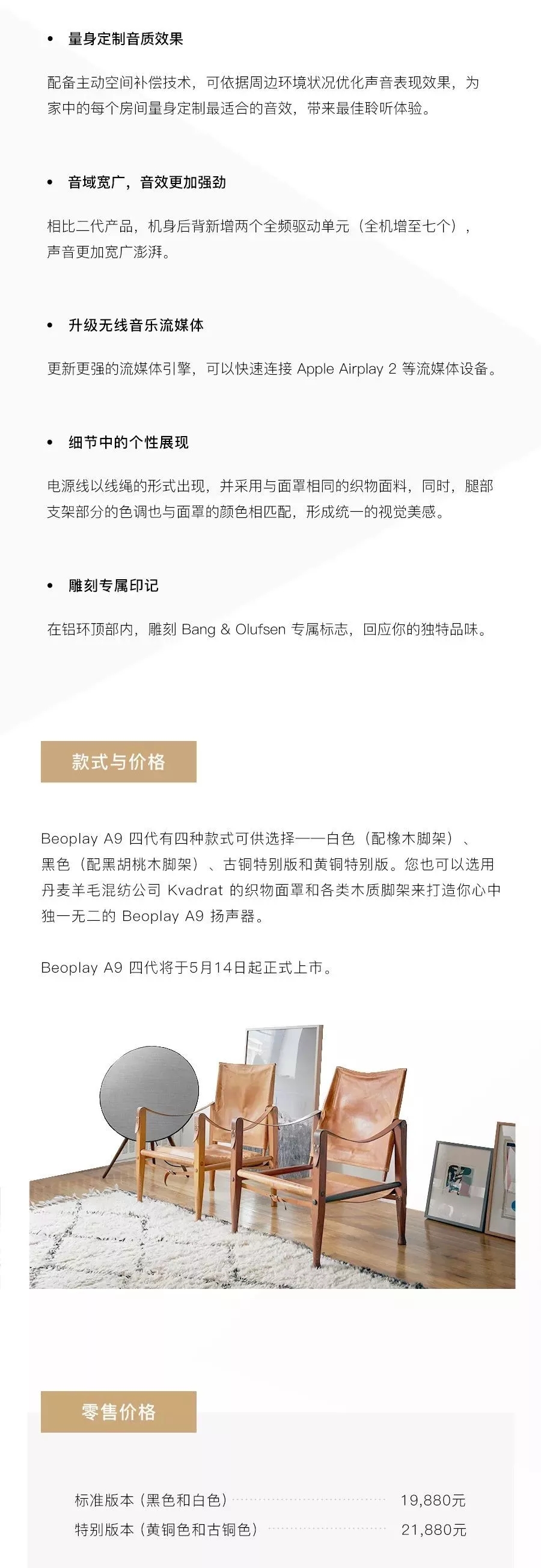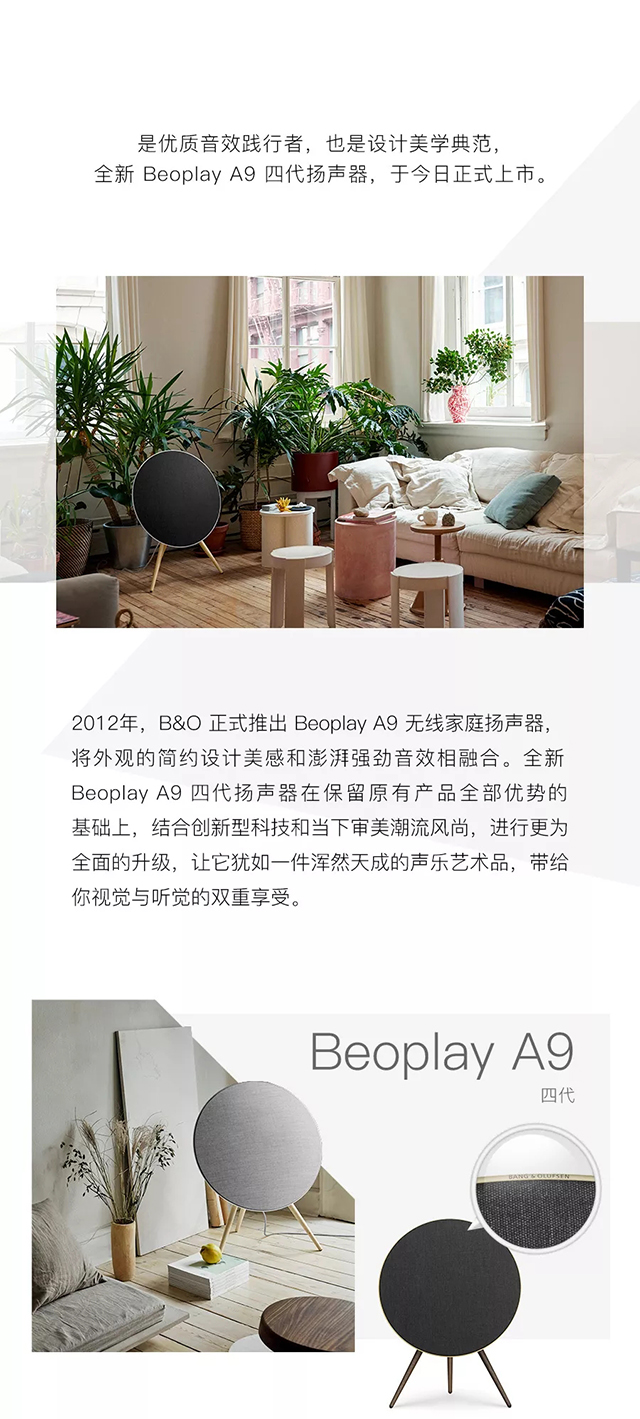第一次看到Beoplay A9的小伙伴基本都不会把它与扬声器联想到一块,这也正好符合B&O将其设计成居家艺术品的期望。自从2012年Beoplay A9上市以来,这款音箱不断更新证明了自己的市场价值。现在,Beoplay A9更新到了第四代,将智能语音助理带进了音箱中。是的,这可能是你见过最文艺的智能音箱之一。也可能是很贵的智能音箱之一。