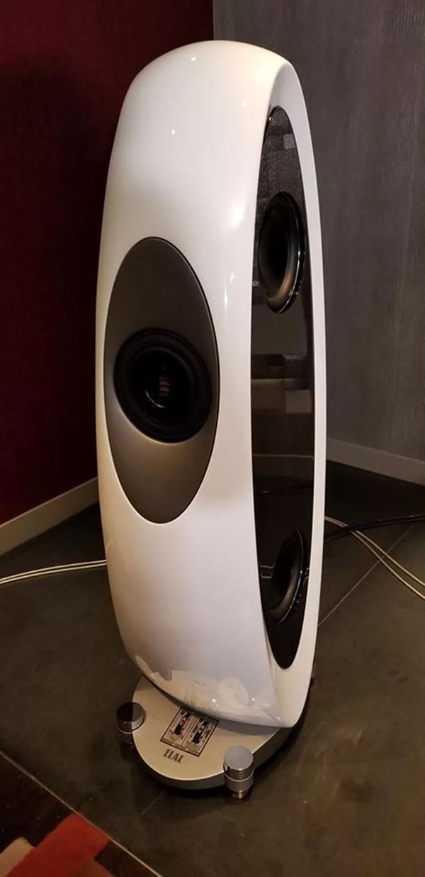 Concentro M外观呈椭圆型,雄伟而且具气势,就是一座现代雕刻----高1.45米,总重量90kg。Concentro M每声道用上四只220mm(铝合金)低音单元,而过去的旗舰FS509 VX-Jet则用上两只(水晶低音单元。按道理,既然FS509 VX-Jet适合用到大约400平方尺地方,那么Concentro M也要在相若的空间中尽情发挥。这个当然,发烧友喜欢自我挑战是另一回事。由于Concentro M左及右两旁装上侧射低音,更有利低频360°散射开去,对于构筑一个低频平顺而庞大的音响舞台幻觉相当之合适。用家不妨花点时间到摆位去,趣味性很强。