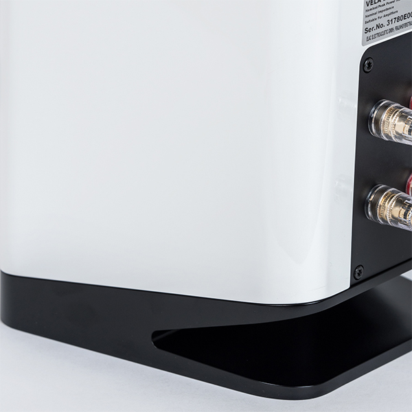 Vela系列另一个特色,就是低音反射孔设于箱体底部。Vela系列箱体的底部为倾斜的设计,低音反射孔就设在此处,加上铝合金制造的底座,除了能让箱体保持完美的平衡,底座与箱体的后方还有个鸭嘴形的开口,让低音反射孔的气流得以宣泄而出。这样的设计,不但让Vela箱体看起来更为完整、美观,把音箱摆在靠墙的位置也不会影响到低音反射孔的运作,把更多的居家空间还给您的生活起居。