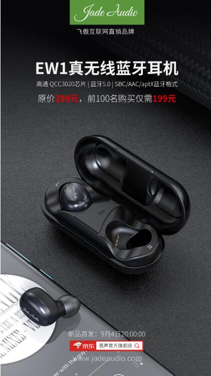 如今智能手机纷纷取消耳机孔,使用无线蓝牙耳机变得越来越流行,甚至成为智能手机的通用配件。为了让更多消费者能以更优惠的价格,享受到更专业的音质,飞傲互联网直销品牌“翡声/JadeAudio”诚意为大家带来这款真无线蓝牙耳机EW1!