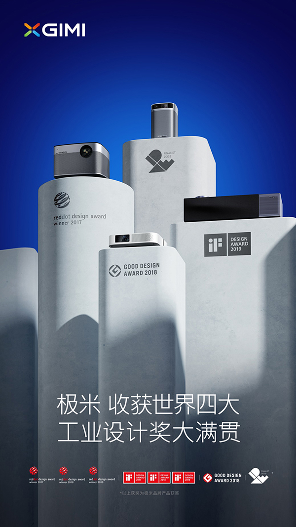 在成立不到六年的时间里,极米获得德国iF设计奖、德国红点设计奖、日本Good Design Award等世界顶尖工业设计大奖多达21次,而随着Play获得2019年美国IDEA设计奖,极米成为了业内首个达成世界四大设计奖大满贯的品牌。