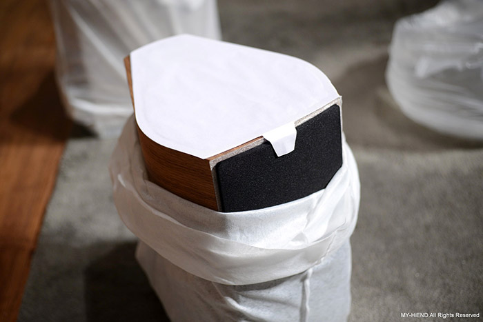 送来的Sonetto I很显然的是全新未拆的,正好也带大家看一下原厂包装的仔细,打开密封上钉的厚纸箱後,可看到厚厚高硬度的白色保丽龙将喇叭保护着,每支喇叭外面都有双层包装保护,一层是透明塑胶袋,可以防潮,内层是白色绒布,在上方还有一层纸保护着喇叭的皮革,面罩与喇叭间也有一层泡棉,避免运送时可能的磨擦,总之保护的非常完善,确保用家收到时是完美的状态。