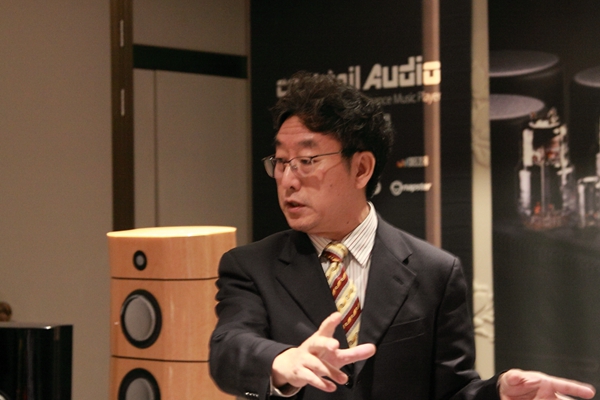 立敏音响总经理王敬民先生首先欢迎媒体朋友的到来,他感叹道与大伙每年一次的聚首也逐步见证了立敏音响的成长。前年参展时立敏音响手头只有四、五个音响品牌,但是今年已经增长到了十五个。这是有赖于重要的合作伙伴张冬松先生的加入,张先生常年旅居英国,于是更便于发掘优秀的音响品牌,及时反应直接与厂家沟通,正是有了他的不断努力,立敏才有机会得以飞速成长壮大。王先生早年毕业于上海音乐学院是科班出身,而张先生则是一位爱乐狂人,对音乐的痴迷甚至到了自学看总谱学指挥的境界,并把两名儿子培养成了英国皇家音乐学院的钢琴演奏家。正是两人共同对音乐和音响的热爱才走到了一起,立敏的目标并不是做到多么大的规模,公司更注重的是追求一种声音极致,立敏所要传达的是那种可以表现音乐本质内涵的音响。