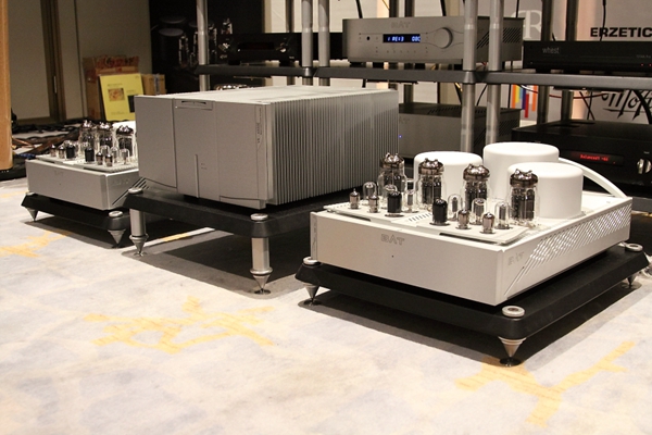 其二是大家看到的,也是大家都知道这个Bladelius谱丽声,这是立敏刚刚拿下的品牌总代理。本来CEO兼设计师Mike Bladelius打算出席展会,但由于临时有事而缺席非常可惜,以后有机会一定会把他请到中国来。因为Mike Bladelius在中国声誉是非常厉害的,而张先生也自己爆料,以前在中国的时候他也经营音响生意,而且是最早代理美国精神Threshold品牌的经销商,所以当他和Mike Bladelius再次相遇时,都彼此感慨岁月无声,Mike Bladelius先生在功放制作上的功力无容置疑,而他对数码未来的感知更是先声夺人,谱丽声Embla DL II数模转换中心/前级绝对行业的先行者。同场演示的还有最新推出的Bladelius Ask 晶体管放大器。
