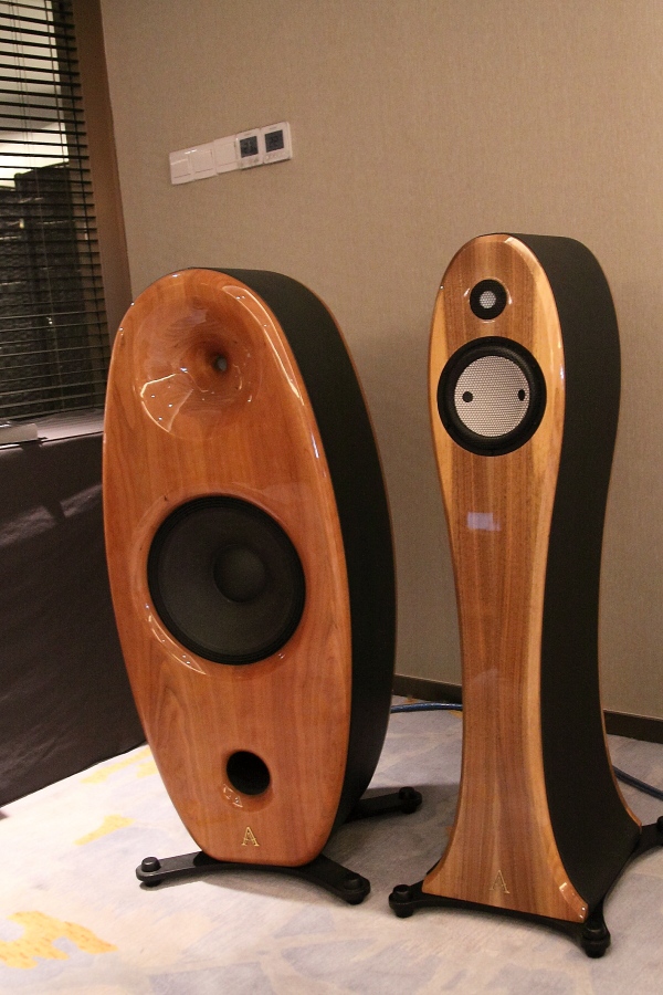 张冬松先生继续介绍到另外一个展厅VIP厅是比较特殊的,他认为这个展厅代表现在整个音乐方向。其一是立敏今年年初接手总代理的新晋品牌Aida Acoustics,品牌创始人兼设计师Mateusz Balabanski携夫人专程前来,这是一个来自肖邦的故乡——波兰的音箱品牌,通过现场演示的是Aida Thaisis 号角音箱、Galatea 陶瓷单元音箱,我们不难看出Aida的工艺设计和声音非常棒、非常有特点、音乐性也很强。所以,立敏音响从去年开始不断的进行推广,包括4月份的上海展以及8月份的香港展。作为一个崇尚自然与艺术美结合的崭新音响产品,有必要让它得到更广泛的认知。