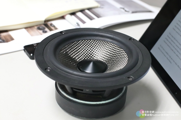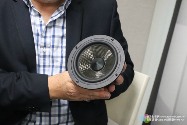 碳纤维就是很轻、很硬、很坚固,这种用在赛车上的高科技材料作为单元材料时拥有很好的扩散性,频率响应也有很出色的表现,本身也没有任何磁性。Martin Harding说已经可以预见越来越多音响品牌使用碳纤维这种材料。也因为高、低音单元都采用相同的材料,先天匹配性就很高。因此就可以使用很简单的分音器进行分音,这也是好声要素之一。