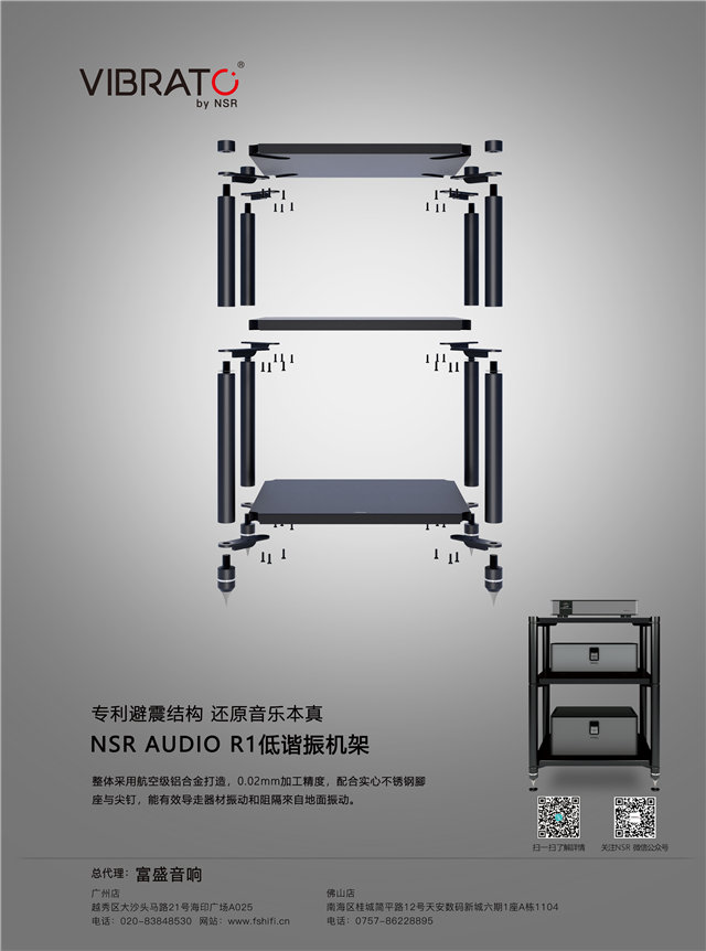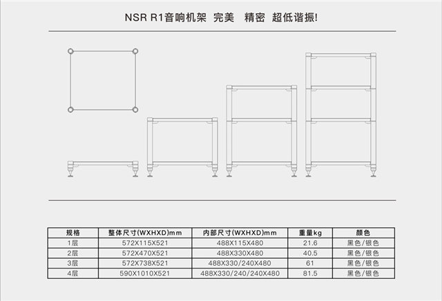 NSR的R1机架是一个有态度的机架。抵御靠转化,吸收靠阻尼。完全科学化的利用测量数据来优化设计,小至拧紧螺栓的力矩,大至层板间精确的相互水平,无一不是精心设计制造,目的是让音响器材的性能得以完全发挥。