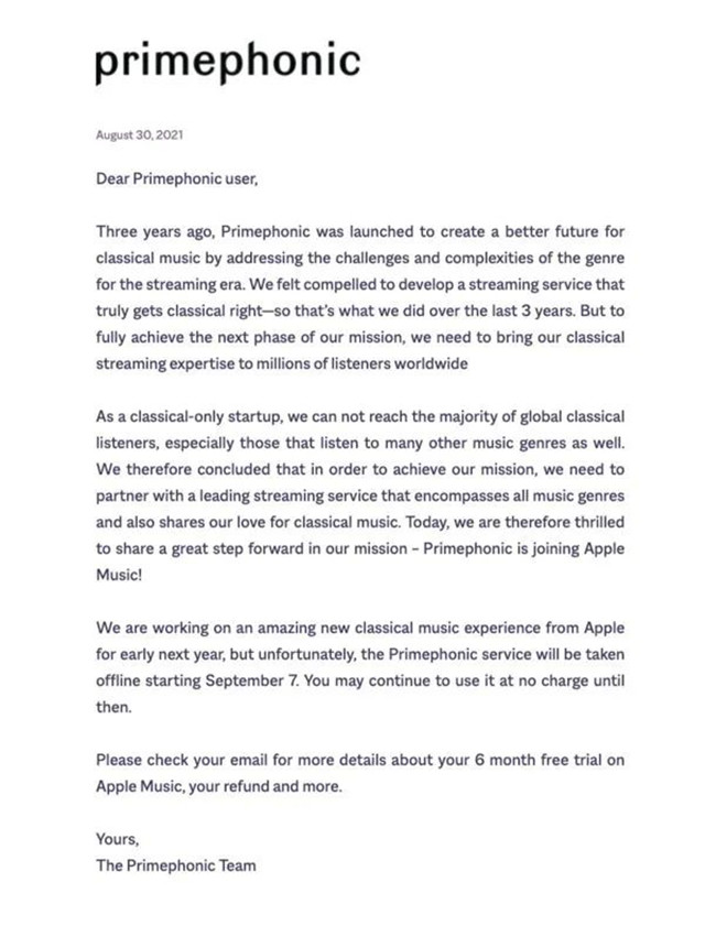 8月30日晚,苹果宣布收购古典音乐流媒体服务平台Primephonic。苹果表示,Primephonic通过专为古典音乐优化的搜索和浏览功能、高质量音频、精挑细选的专家推荐内容和详实的曲目与录音背景信息,为用户带来卓越的欣赏体验。